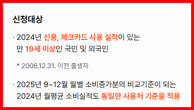 2025년 12월까지 신청할 수 있으며, 지금 신청해도 9월부터의 소비 실적이 모두 반영됩니다.